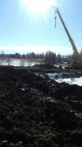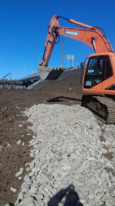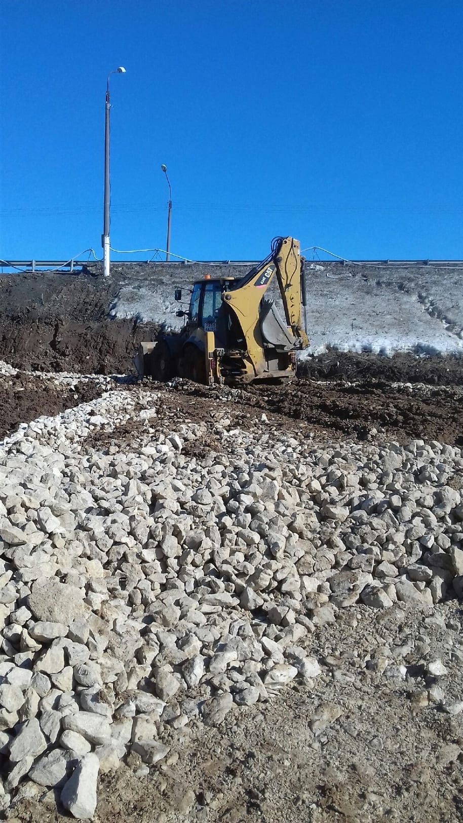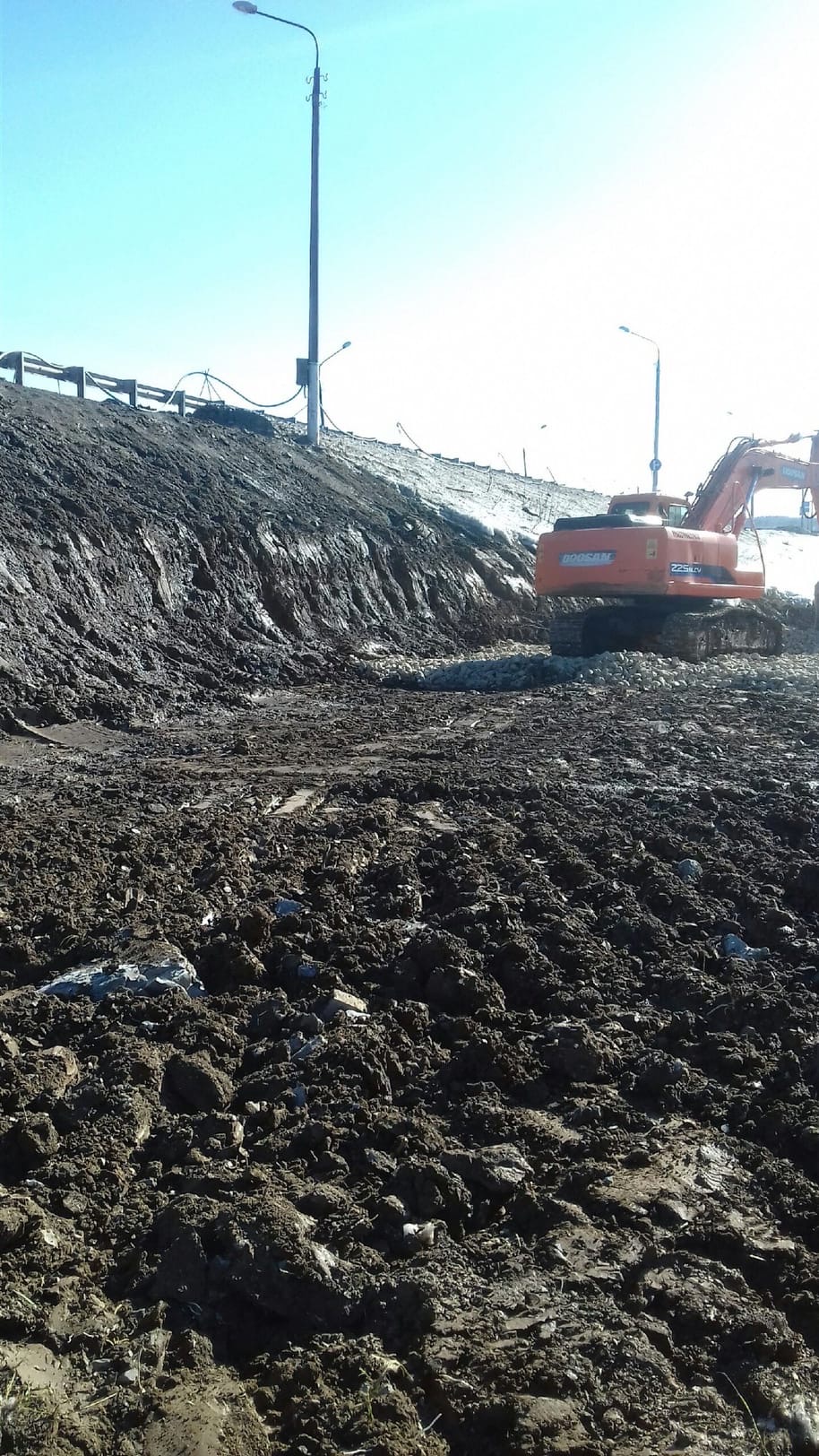Якутск. Чусовской мост. Строительство дорожной развязки в Пальниках. Подготовка площадки для устройства шпунтовой подпорной стенки.