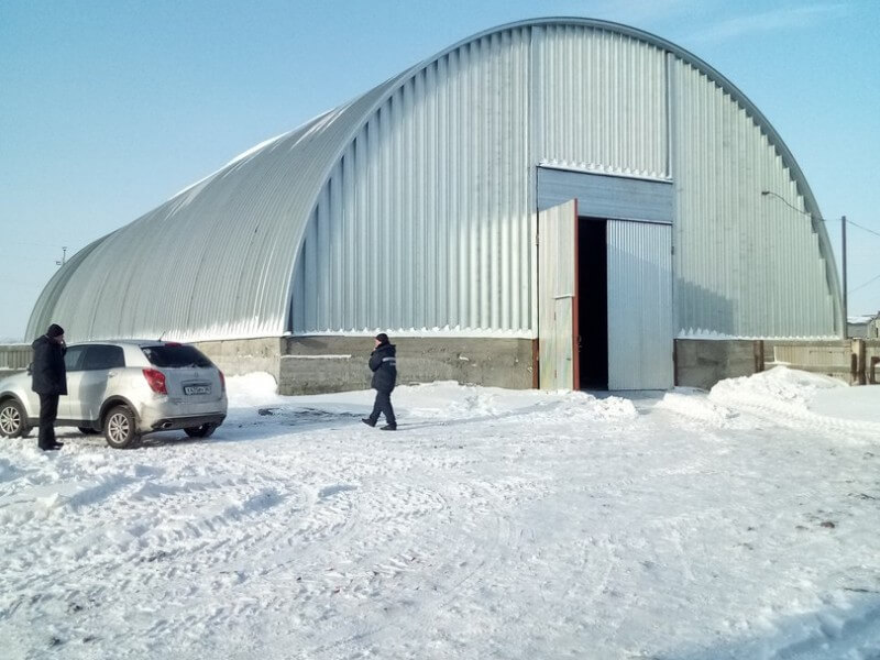 Строительство бескаркасного арочного ангара 12х30 на готовом фундаменте заказчика в Якутске